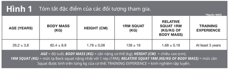 • các đối tượng tham gia thí nghiệm có kinh nghiệm tập luyện ít (1RM Squat trung bình là 89kg);