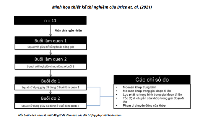Nghiên cứu gần đây thực hiện bởi Brice và đồng nghiệp (Brice et al. (2021)) giải đáp mối quan tâm trên qua việc so sánh ảnh hưởng của hai loại giày đến kỹ thuật và khả năng tập luyện khi thực hiện Back Squat đến ngưỡng cận thất bại.